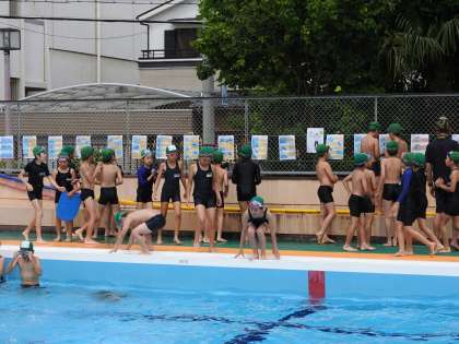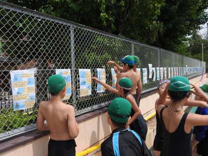 子どもたちは水泳チェックカードをもとに,お互いで高め合っています。