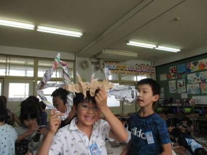 新聞紙を丸めたり,ねじったり,ちぎったりと,体全体で楽しんで活動していました。
