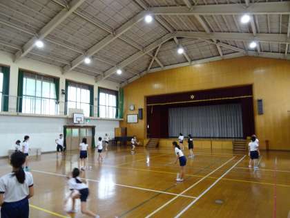 バドミントンクラブの活動です。体育館を広く使って力いっぱいラケットを打ちました。