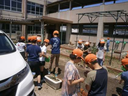 発芽の条件がわかったので,次の学習のためにアサガオを花壇に植えました。