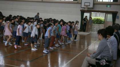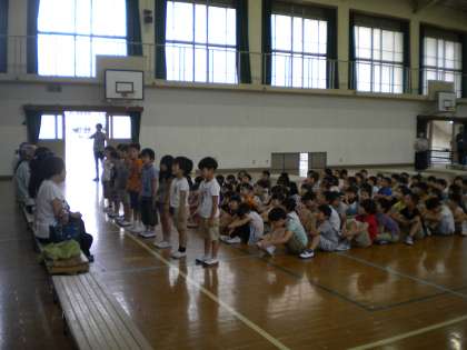 今日は、にこにこ会がありました。まず、はじめの言葉と1年生からの歌の発表です。