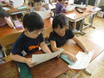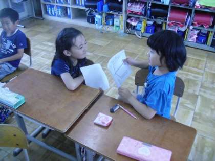 板橋タイムでは,お魚ボーン図を使って活動しました。お題は,『体育の時は,体育服で活動する方がよい』から理由を考えました。それぞれの理由をお隣の人と意見交流しました。