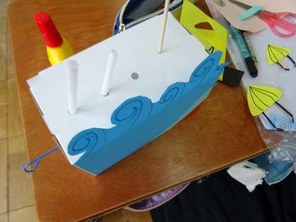 飾り付けをし,イメージ通りに作品づくりを進めました。
