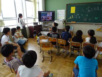 お楽しみ会を開きました。楽しい出し物だけでなく,スライドショーも上映されました。