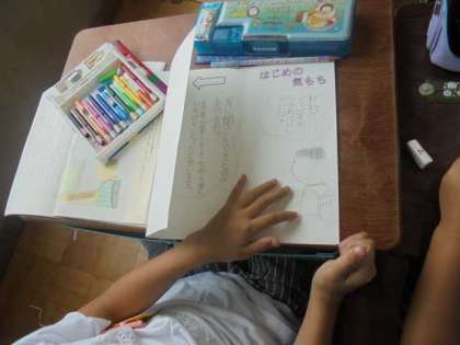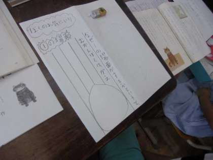 「もうすぐ雨に」のお話をまとめ,て自分の好きな場面を友達に紹介するための準備をしました。