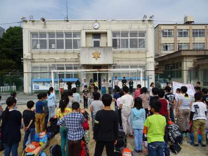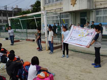 良い天気もと、運動場で出発式をしました。
