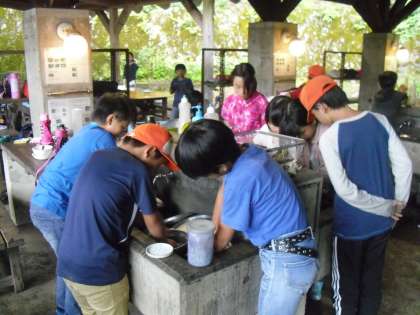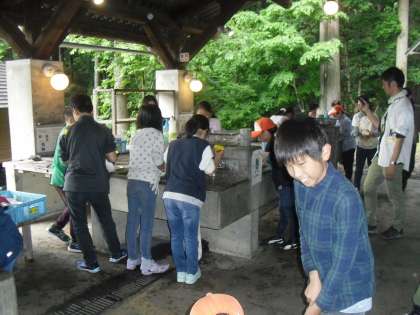 「来た時よりも美しく」を合言葉に最後までかまど・食器・鍋・流し・テーブル等々みんなで協力して頑張っていました。