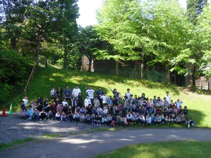 出発前に、学年全員で写真を撮りました。