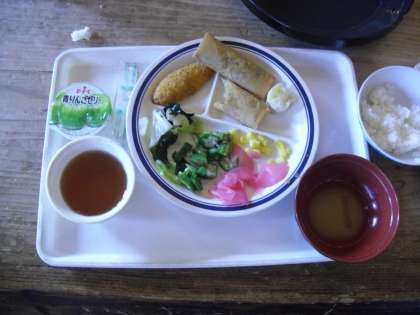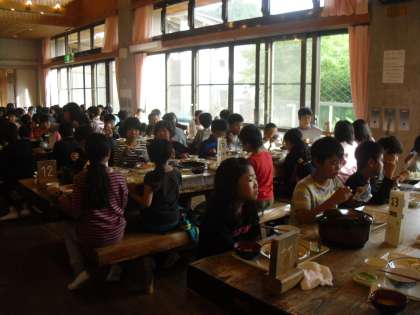 今日の夕食は,食堂です。昼食は、山の上でのおにぎり弁当だったので、お腹はとてもすいていました。