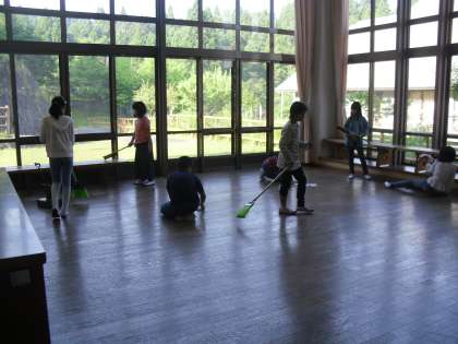 最後の日なので、自分たちの使った部屋や宿泊棟の清掃をしました。