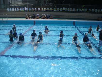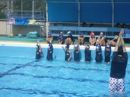 だるま浮きや大文字浮きなどの浮く活動やけのび,いるかジャンプなどに取り組みました。