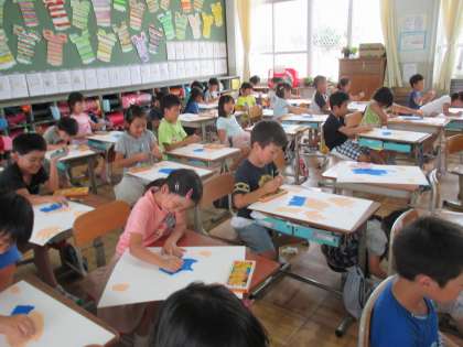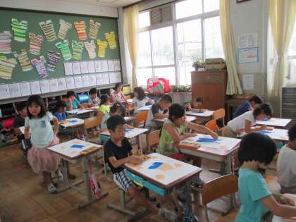 シャワーを浴びている時の気持ちを発表し,シャワーのイメージを広げてから活動に入りました。