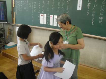 本日,2組では詩を書く学習をしました。川田先生から,詩を書くポイントを教わりました。水泳学習についての詩を作りました。