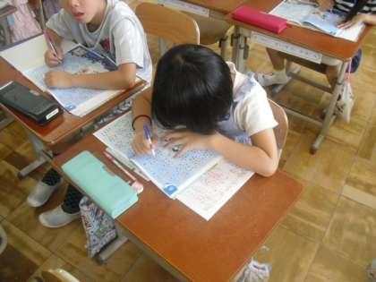 1000までの数の導入で,七夕の夜空の星を使い100をこえる数を確認しました。
