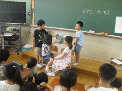 2組の図書係さんたちが,クラスのみんなに本の読み聞かせをしました。