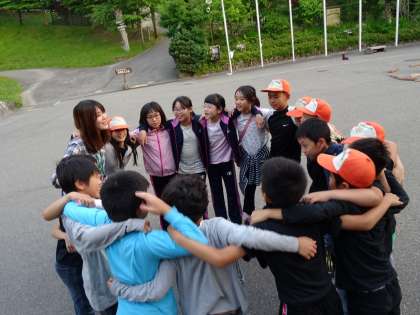 最後は円陣を組みました。キャンプファイヤーの成功を祈って,心を一つにしました。
