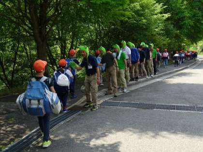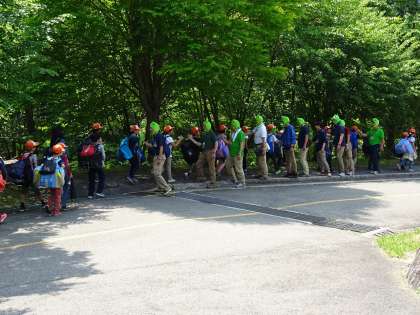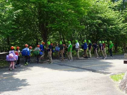 所員の方に見送られ,山の家を後にしました。ハイタッチをして再会を願う姿も見られました。