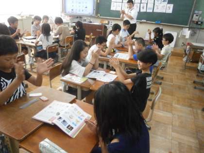 5年生は外国語で,「Can you 〜?」を学習しています。