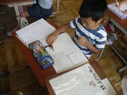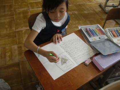 小さな生き物について調べたことをリーフレットにまとめています。図や絵も上手に使って工夫している作品も見られました!