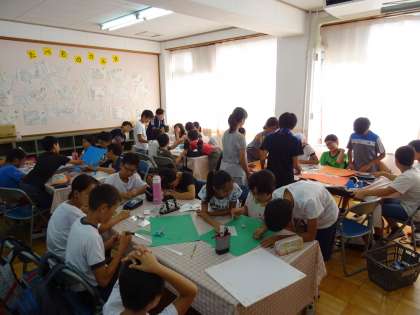 サマーキャンプの準備をしました。看板等をグループで作成しました。
