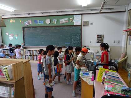 学習会前に図書館を開館しています。早速,借りた本を返しに来た子どもがいました。