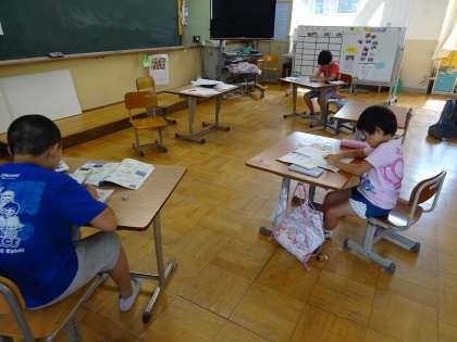ひまわり学級の学習会です。日本地図や計算問題などに取り組みました。