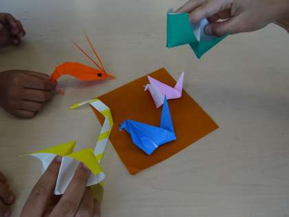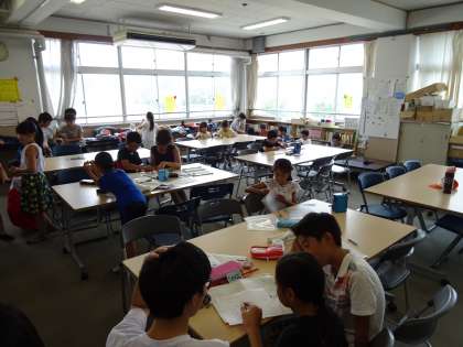放課後まなび教室の様子です。課題を終えて,折り紙を折る子どももいました。