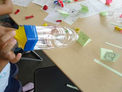 空気砲と模型の完成です。お互いに出来映えを見せ合っていました。