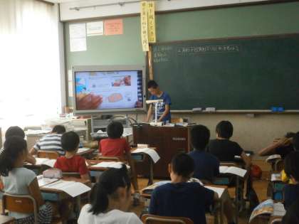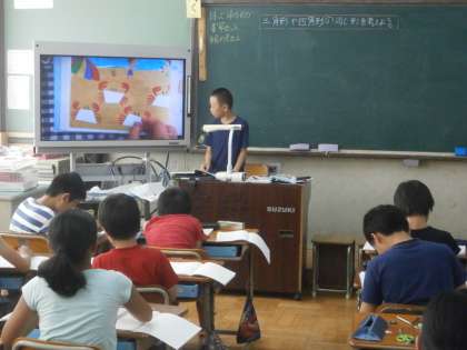実物投影機に照らし合わせて,実際に確認しています。