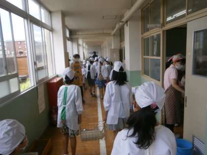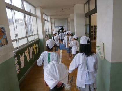 いつもより多い人数で給食当番をし,体も心もあたたまる給食になりました。