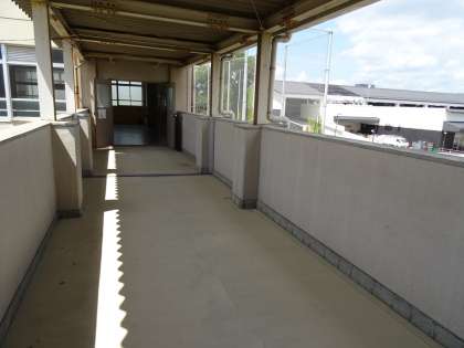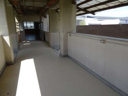 北校舎1・2階渡り廊下の塗装を行いました。以前よりも滑りにくくなりました。