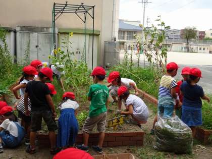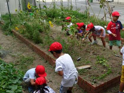1年生は花壇の整備をしました。夏休みの間に伸びた雑草を丁寧に取り除いていきました。