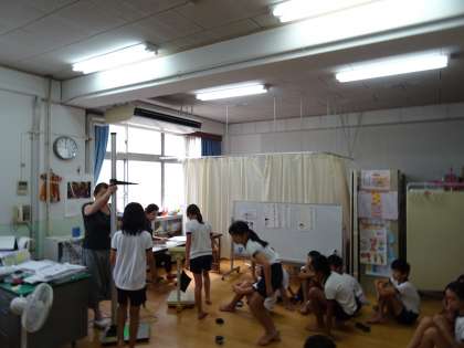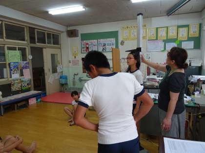 8月の身体計測の様子です。夏休みで身長がとても伸びた子どもが多かったようです。