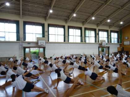 運動会に向けて,組体操の練習を始めています。まずは一人技からです。