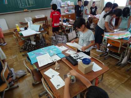 おたがいの自由研究を鑑賞しました。友達の工夫や苦労を知ることが,自分の作品づくりにつながります。