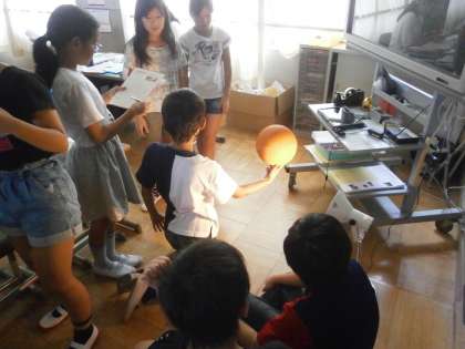 ライトを太陽に見立て,ボールを月に見立て,満ち欠けの確認をしました。