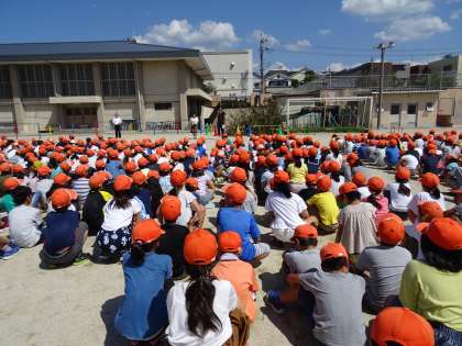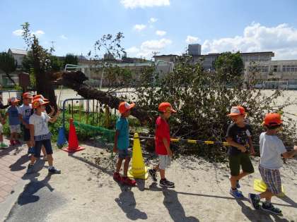 登校してきた子ども達は,柿の木の前に立ち尽くし,