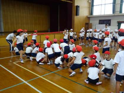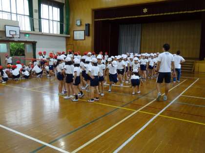 3年生は「台風の目」を行います。同じグループの友達とポジションや動きについて理解し,活動の見通しをもちました。