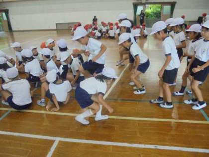 あいにくの天気となり,体育館で練習を行いました。次こそは,運動場でみんなで思いっきり走るのが楽しみですね。