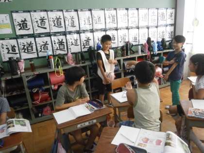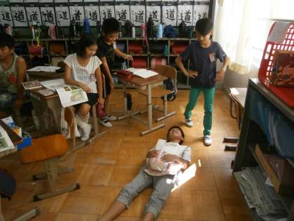 エプロンに赤ちゃんの人形を入れ,疑似妊婦さんになってみます。