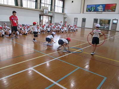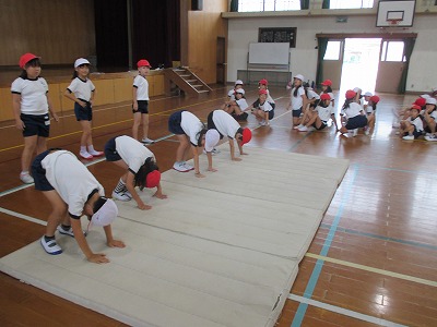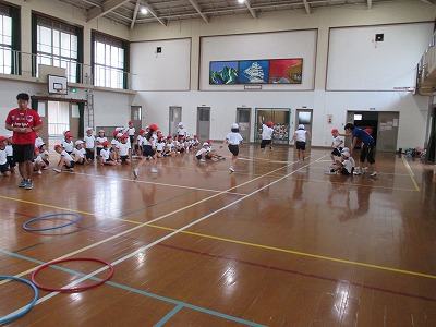 雨が降ったので体育館の中で練習をしました。