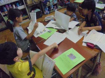 社会科の学習で調べてきたスーパーマーケットの工夫を,クラスのみんなに伝えるためにグループで話し合いました。
