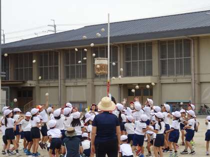 エントリー種目の玉入れの練習をしました。応援団員が先導しました。