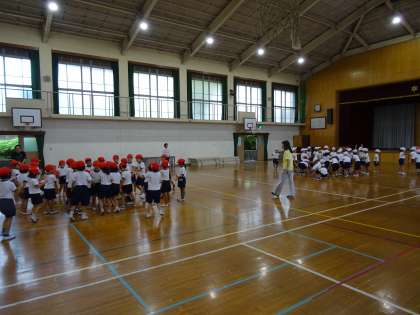 雨でしたが,体育館で当日の動きを想定して練習を行いました。