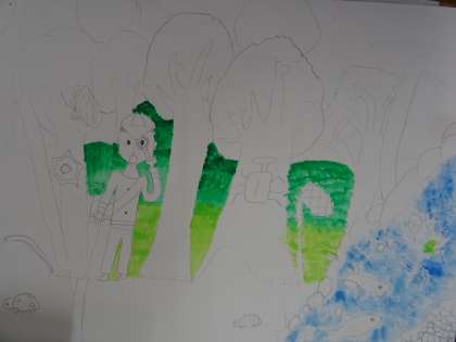 ♪4年生 図画工作「お話の絵」〜色を塗り進めよう〜 その2