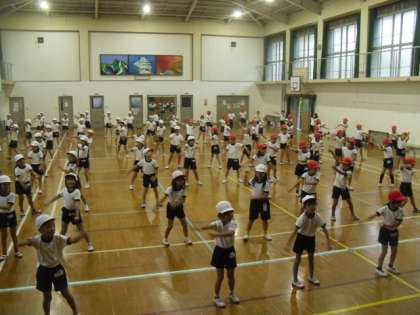 本日はあいにくの天候により,体育館での活動になりました。振付けの一つ一つしっかり確認をしました。