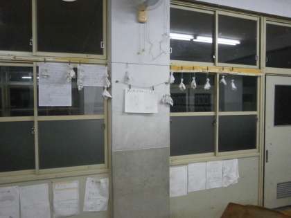 最初は一人二人で作っていたてるてる坊主を次第にみんなでつくるようになり,