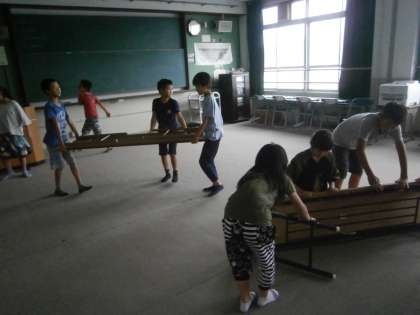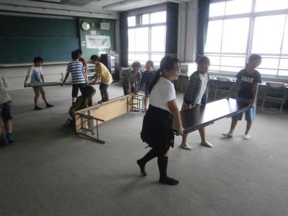 時間を見つけて,机だしも手伝っています。