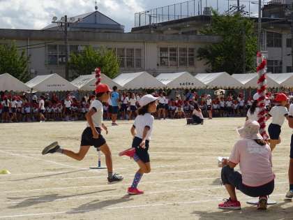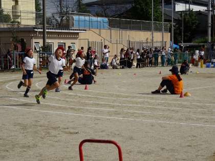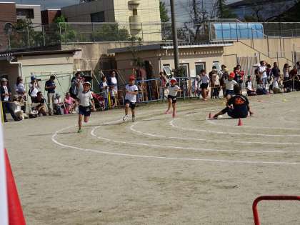 3年生の80m走です。コーナーは初めてですが,スムーズに回れていました。