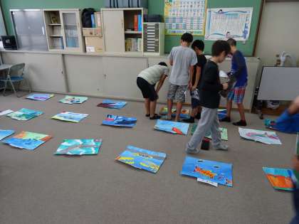 完成したお話の絵を鑑賞しました。次回の作品づくりに活かしてほしいと思います。